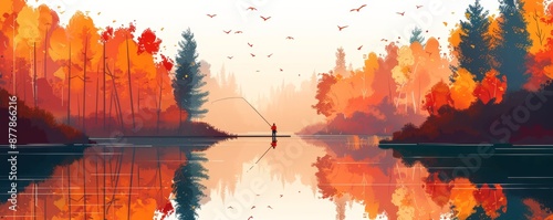 single, figure, standing, by, the, lake, surrounded, autumn, tree, reflecting, in, still, water, scenery, is, peaceful, tranquil, and, beautiful, creating, an, solitude, for, contemplation, serenity, calm, gold, leaves, of, wood, summing, to, serene, duck pond, loneliness, with, falling, symbolism, harmony, isolation, create, a, dreamlike, relaxation, idylli, silhouette, colourful