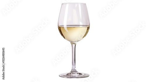 A single glass of white wine on a clean and minimalistic white background, perfect for use in food, drink or lifestyle images