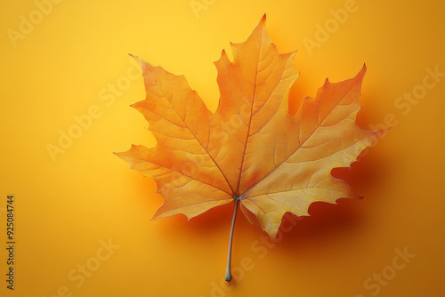 A single golden maple leaf isolated on a soft pastel orange background, symbolizing the start of autumn,