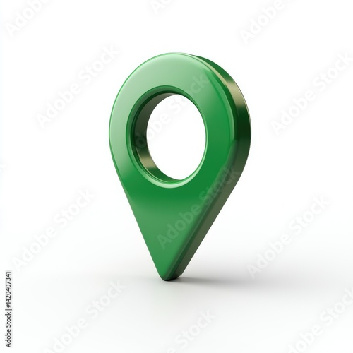 A single green location pin standing on a white background in studio shot
