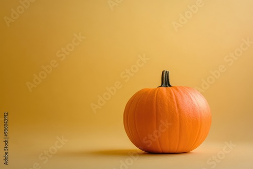A Single Orange Pumpkin Against a Yellow Background