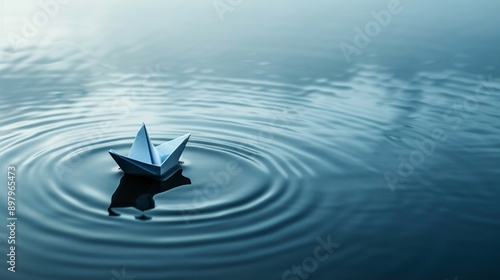 A single paper boat on a still water surface, creating ripples, symbolizing impact and simplicity