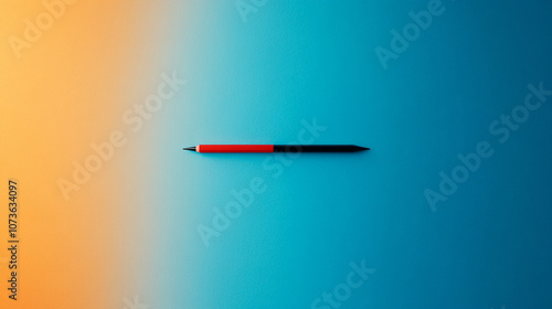 A single red and black pen lays flat on a blue and yellow gradient background.