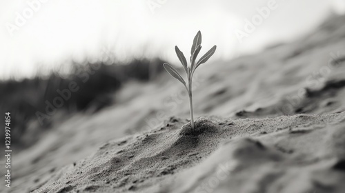 A single seedling sprouting from wet sand, illustrating the beginning of plant growth after winter or during early spring.
