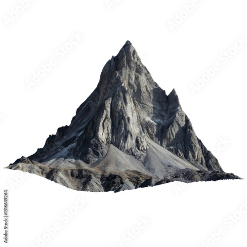 A single tall, jagged mountain peak isolated on a transparent background
