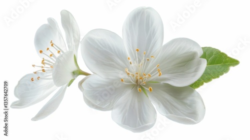 A single white jasmine flower, isolated on a transparent white background, with delicate petals and fragrance