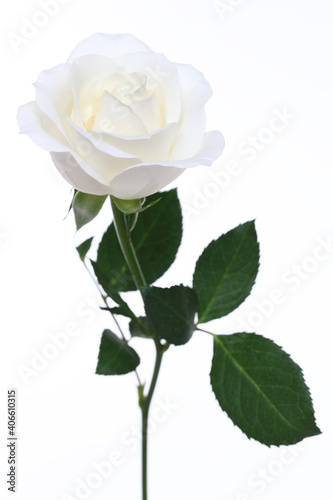 A single white Rose isolated on white background