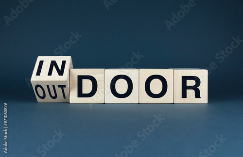 A single wooden block is flipped to transition from indoor to outdoor