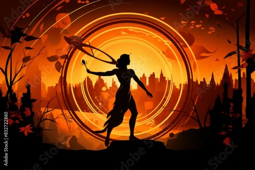 elegance, geometric, ornate, streamlined, roaring, 20s, wallpaper, desktop, background, art, pen, paper, generative, ai, art deco, illustration, mystic, skilled, precise, archer, striking, deadly, accuracy, fantasy, sunlit, forest, glade, stand, poised, bow, drawn, arrow, trace, arc, professional, artist, designer, photographer, precision