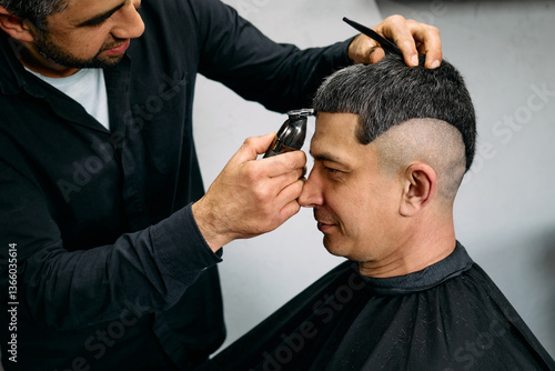 barbershop, hairdresser, haircutting, barber, styling, man, haircut, grooming, modern, professional, clipper, client, hair, scissors, trim, hairline, withering, hair care, appointment, salon, cleanliness, beauty, presentation, technique, consultation, community, routine, service, ambience, trendy, casual attire, conversation, relaxation, atmosphere