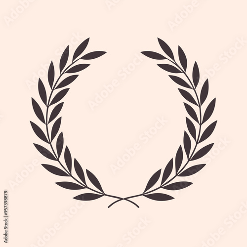 a SLaurel Leaf Wreath crown branch black logo icon vector silhouette, isolated white background