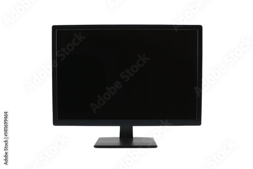 A sleek black monitor sits quietly on a modern desk, waiting for the user to power it on and explore endless possibilities in digital creation isolated on transparent background