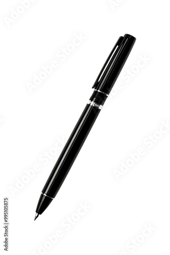 A sleek black pen with a shiny surface, ideal for professional writing and note-taking tasks.
