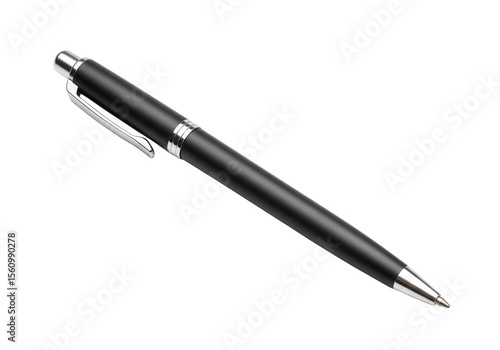 A sleek black pen with silver accents rests on a surface isolated on transparent background