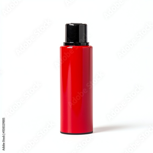 A sleek, cylindrical red bottle with a black cap, perfect for cosmetics or personal care products.