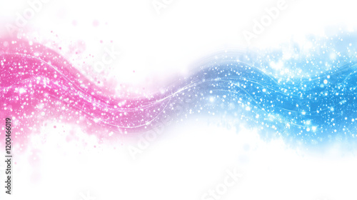 A sleek digital wave of glowing, fragmented light strips, alternating hues of blue and pink