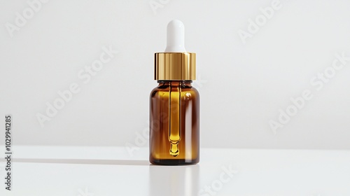 A sleek glass dropper bottle containing golden-toned oil, perfect for promoting holistic well-being.
