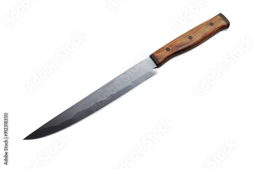 A Sleek, Handcrafted Knife With a Distinctive Wooden Handle on a White or Clear Surface PNG Transparent Background