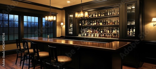 A sleek home bar with contemporary design, stylish fixtures, and a sophisticated atmosphere