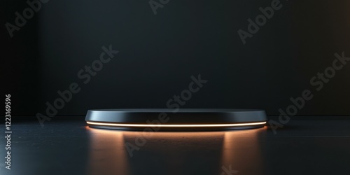 A sleek, illuminated display base suitable for showcasing products or art. Ideal for commercial use in advertising, e-commerce, and promotional materials.