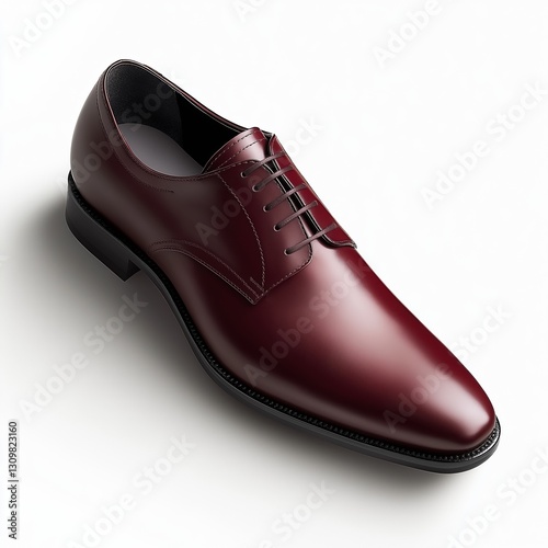 A sleek leather derby shoe with hand-stitched details and a deep oxblood finish, isolated on a white background