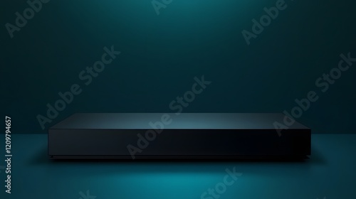 A sleek, matte black podium with a gradient teal background, ideal for showcasing products.