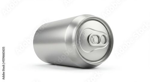 A sleek silver aluminum beverage can lies on its side isolated on white background