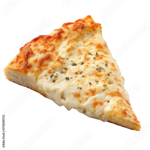 A slice of cheese pizza with a golden crust and melted cheese, isolated on a transparent background.
