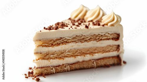 cake, slice, layered, frosting, white, chocolate, sprinkle, background, surface, dessert, sweet, baked, delicious, tasty, food, treat, pastry, cream, vanilla, isolated, closeup, studio, shot, single, portion, piece, sweetness, confection, indulgence, epicure, culinary, presentation, decoration, layer, crumb, brown, beige, creamy, delight, eat, celebration, party, occasion, bakery, sugar, tiramisu, delectable