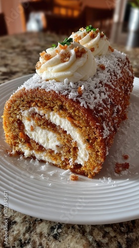 cake, dessert, sweet, autumn, fall, spice, carrot, cream, cheese, frosting, coconut, crunchy, topping, delicious, baked, treat, deliciously, food, pastry, confectionery, culinary, sugary, delightful, tasty, appetising, deliciously, delectable, gourmand, holiday, celebration, festive, winter, spring, summer, season, homemade, plate, white, kitchen, photo, baking, receipe