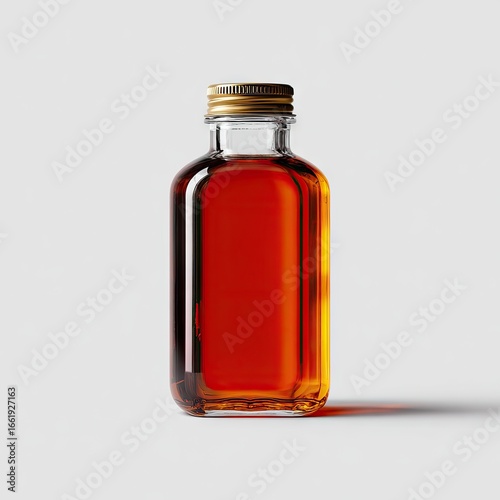 bottle, glasses, amber, liquid, gold, cap, small, clear, transparent, container, dark, shadow, white, background, simple, clean, minimal, product, cardboard box, design, rectangular, square, shape, oil, essence, serum, tincture, medicine, beverage, alcohol, whiskey, honey, sirup, maple, dye, cosmetic, aromatherapy, fragrance, perfume, extract, distilled, condensed, fluid, epicure, premium, elegant, refined, luxury, vintage