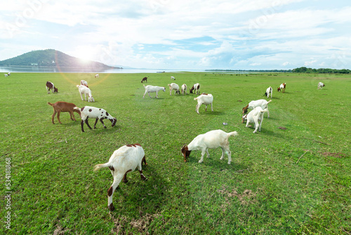 standing, graze, sky, female, view, farmland, cow, beef, looking, baby, milk, farming, outdoors, funny, midwest, land, spring, landscape, meat, young, rural, cute, agriculture, domestic, white, mammal, grass, farm animal, farm, pasture, meadow, sheep, herd, green, nature, goat, field, animal, small, country, flock, grazing, cloud, summer, hair, group, countryside, background