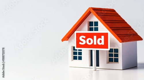 A small model house with a red roof displays a "Sold" sign, indicating the successful sale of a property.