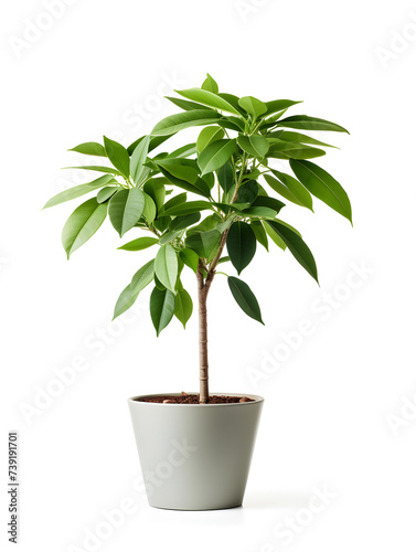 A small money tree in a pot on white background