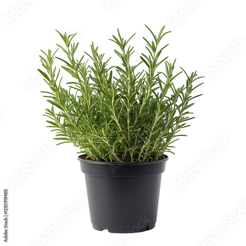 A Small Potted Rosemary Plant with Fragrant Green Leaves Isolated on Transparent Background