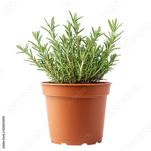 A Small Potted Rosemary Plant with Fragrant Green Leaves Isolated on Transparent Background
