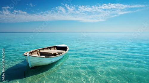 boat, dinghy, water, sea, ocean, ripple, exploration, peaceful, seascape, tranquil, recreation, wave, relaxation, journey, horizon, marin, shore, calm, sunlight, turquoise, idylli, sailing, floating, pristine, clear, vessel, scenic, island, boating, tropical, cloud, leisure, blue, sky, holiday, watercraft, vacation, nature, adventure, travel, summer, day, coast