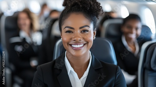 woman, black, smiling, suit, aeroplane, passenger, travel, happy, flight, business, air, seat, portrait, female, adult, professional, businesswoman, airline, air travel, journey, transport, vacation, cabin, window, people, black woman