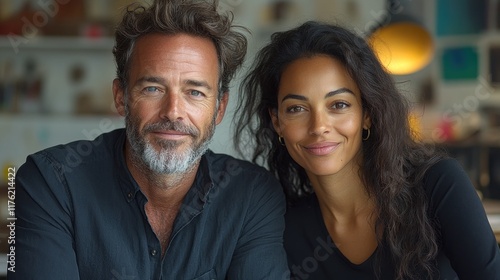couple, portrait, smiling, joy, connection, happiness, lifestyle, indoor, friends, together, warmth, diversity, candid, human relationships, affection, love, people, emotion, engagement, casual attire, style, oneness, intimacy, expression, natural, setting, friendship, harmony, comfort, light, background, atmosphere, photo, interaction, moment, beauty, charme, elegance, gaze, trust, authenticity, culture, personality, togetherness, scene, smile