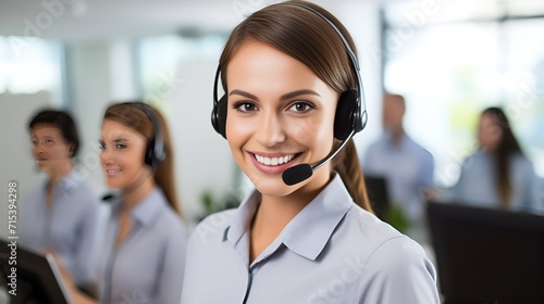 A smiling customer service representative assisting clients , smiling representative, customer service, assisting clients