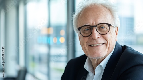 elderly, man, office, smile, glasses, pose, modern, set, portrait, happy, imagery, indoor, life events, clarity, diversity, vibrant, engagement, attire, casual attire, ambience, energy, presence, bequest, workspace, elegance, wisdom, cheerful, relaxation, demeanor, connection, confidence, visual, professional, friendly, respect, expression, culture, background, lifestyle