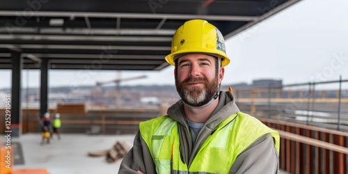 A smiling male construction worker looks confidently at the camera, embodying safety in the building industry.