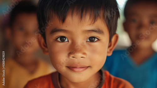 boy, children, smiling, friends, portrait, eye, warm, atmosphere, sunny, afternoon, community, happiness, youth, friendship, high-coloured, playful, innocence, natural, casual attire, clothing, engaging, joyful, expression, childhood, togetherness, cultural, diversity, village, life