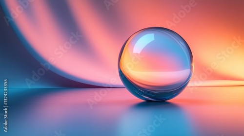 A smooth, circular object, its surface reflecting light with a gradient of color, sits majestically against a studio backdrop, bathed in soft, even illumination, creating a striking image for product