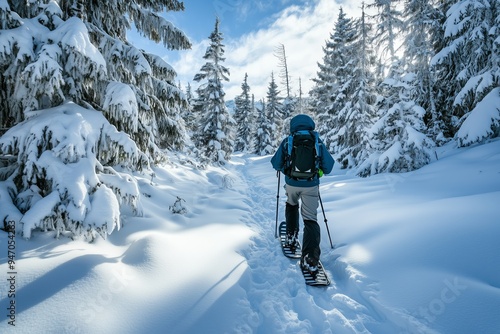 snowshoeing, winter, trail, snow, tree, mountain, adventure, hiking, nature, serene, cold, landscape, ice, fresh, scenic, exploration, wood, sport, recreation, sunlight, exercise, solitude, peaceful, clear, sky, trekking, fitness, equipment, seasonal, wildlife, weather, terrain, sport, travel, picturesque, journey, leisure, breathtaking, panoramic, snowy, rugged, freedom, air, sporting, calmness, activity, trail, activity, season