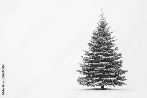 tree, evergreen, pine, fir, snow, winter, white, branch, needle, frost, cold, landscape, nature, season, outdoors, sky, ground, forest, glacé, peaceful, serene, minimalist, monochrome, simplicity, background, scenery, quiet, tranquil, isolated, single, stark, majestic, beautiful, natural