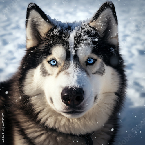 A snowy husky dog