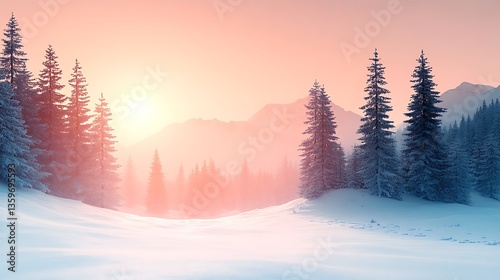 snow, winter, tree, pine, forest, sunrise, sunset, sky, cold, dawn, dusk, landscape, mountain, peak, light, sun, colours, nature, white, blue, pink, orange, view, horizon, wilderness, scenic, scene, frosted, evergreen, shadow, vale, covered, silent, peaceful, serene, tranquil, fresh, crisp, atmosphere, chilly, beautiful, idylli, quiet, environment, untouched, distant