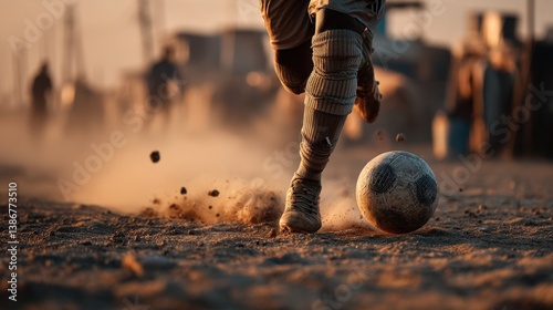 technique, soccer, sport, athlete, motion, kick, ball, dirt, sunset, action, player, energy, competition, dynamic, field, gameplay, intense, team, fitness, excitement, challenge, youth, training, performance, passion, speed, leisure, adventure, travel, culture, fun, movement, adrenalin, lifestyle, exercise, play, skill, goal, strategy, nature, life events, recreation, enjoyment, joy, victory, teamwork, determination