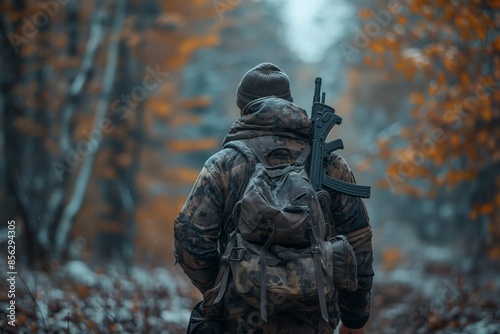 soldier, camouflage, gear, mist, timberland, equipment, military, forest, tactic, autumn, backpack, defense, strategy, warfare, army, patrol, training, mission, survival, adventure, combat, preparedness, security, armed forces, tactical, reconnaissance, environment, fog, cold, tree, leaf, brown, green, quiet, nature, stealth, darkness, foliage, readiness, solitude, apparel, exercise, discipline